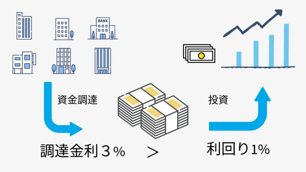 | 例 | 3%で調達→5%運用(+2%) | 3%で調達→1%運用(▲2%) |