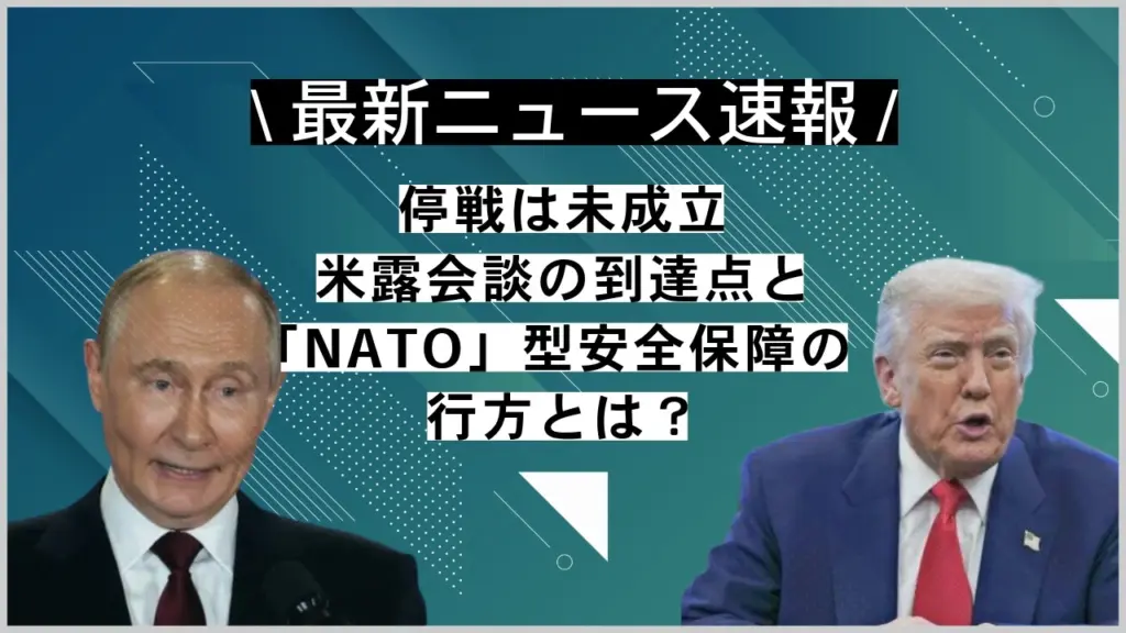 アラスカの米露首脳会談は停戦合意に至らず。18日(米東部)に向け、ゼレンスキー大統領と欧州首脳がワシントンで結束確認。 論点は「停戦の順序」「領土」「NATOに代わる安全保障保証」。投資・実務への影響も整理します。