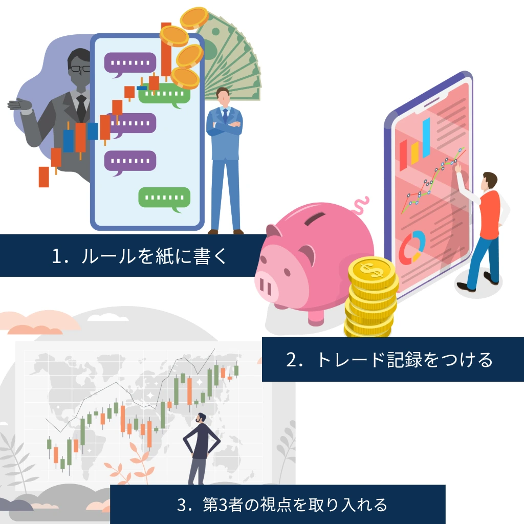 エントリー・利確・損切りの基準を明文化することで、感情の入り込む余地を減らします。