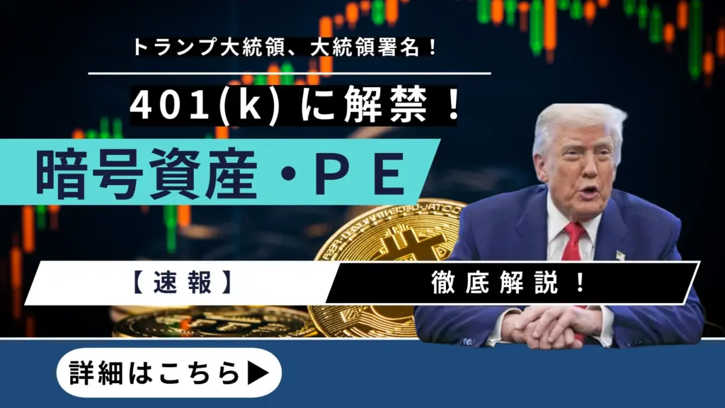 【速報】トランプ大統領、401(k)に「暗号資産・プライベートエクイティ・不動産」解禁の大統領令に署名|徹底解説!