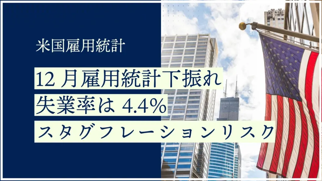 【速報】12月米雇用統計は予想下振れ|失業率4.4%へ悪化も賃金は高止まり、2026年スタグフレーションの危機