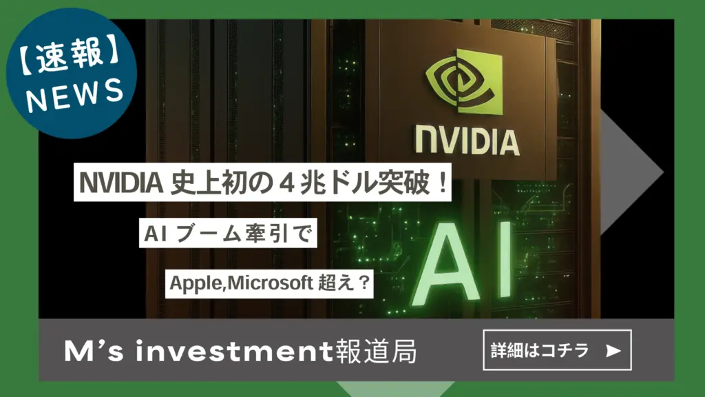 【速報】NVIDIAが史上初の時価総額4兆ドル突破!AIブーム牽引でApple・Microsoft超え視野