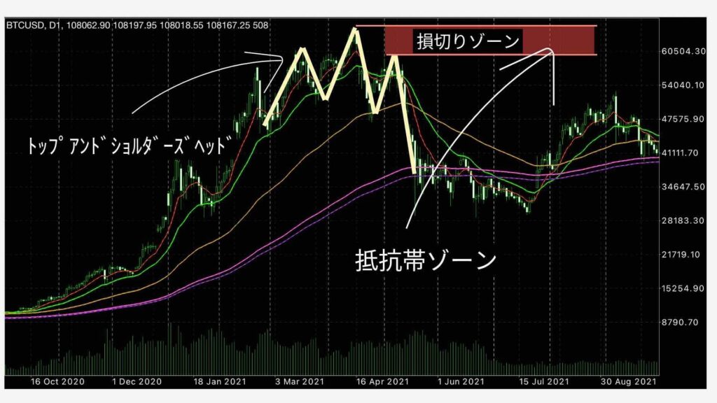 - 損切り:右肩の高値や少し上に逆指値を置く