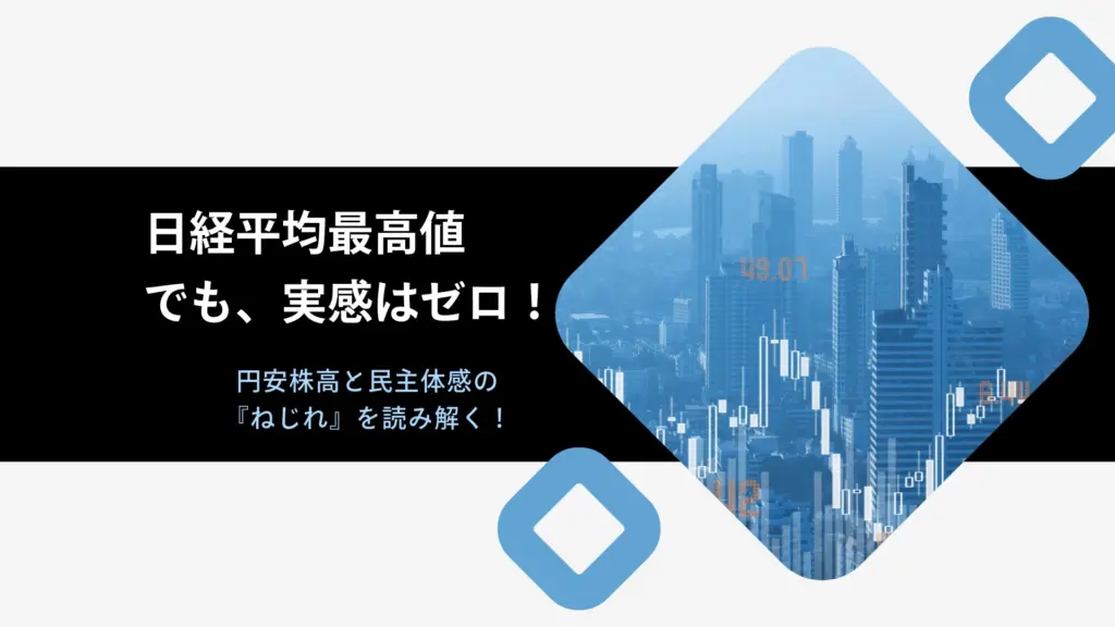 株価は絶好調、でも生活は楽にならない。—今の日本では「株高=好景気」という従来の方程式が通用しづらくなっています。本稿では、円安×株高が大企業に先に波及し、中小企業と家計に実感が届きにくい理由をデータで整理。だからこそ必要な自分で守る資産形成まで一気通貫で解説します。