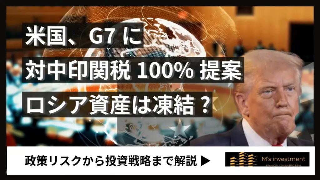米国、G7に対中印100%関税提案|凍結資産没収でロシア圧迫