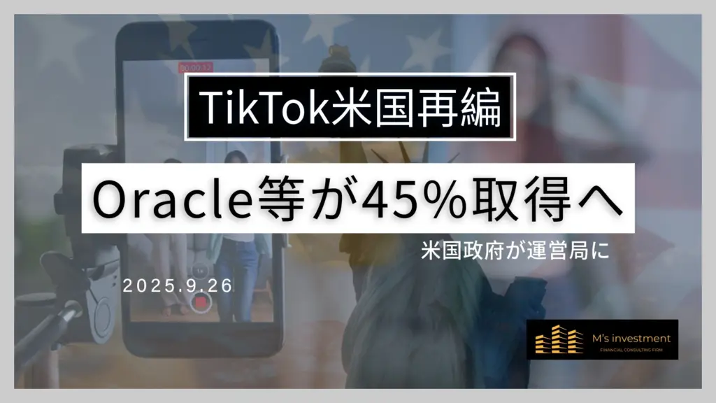 - Oracle・Silver Lake・MGXの連合がTikTok米国に計約45%出資